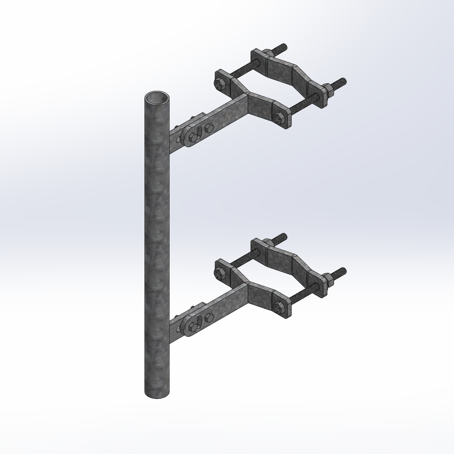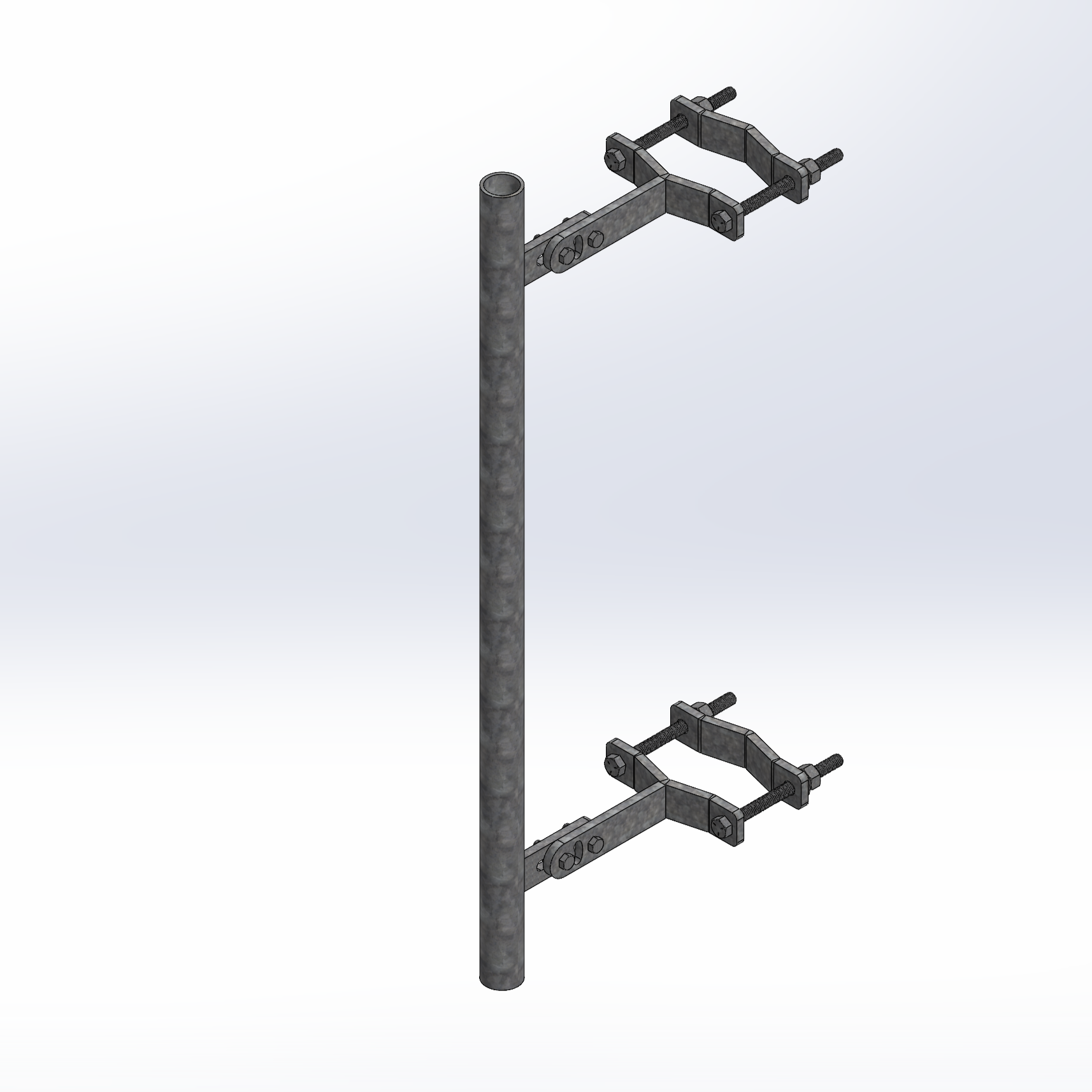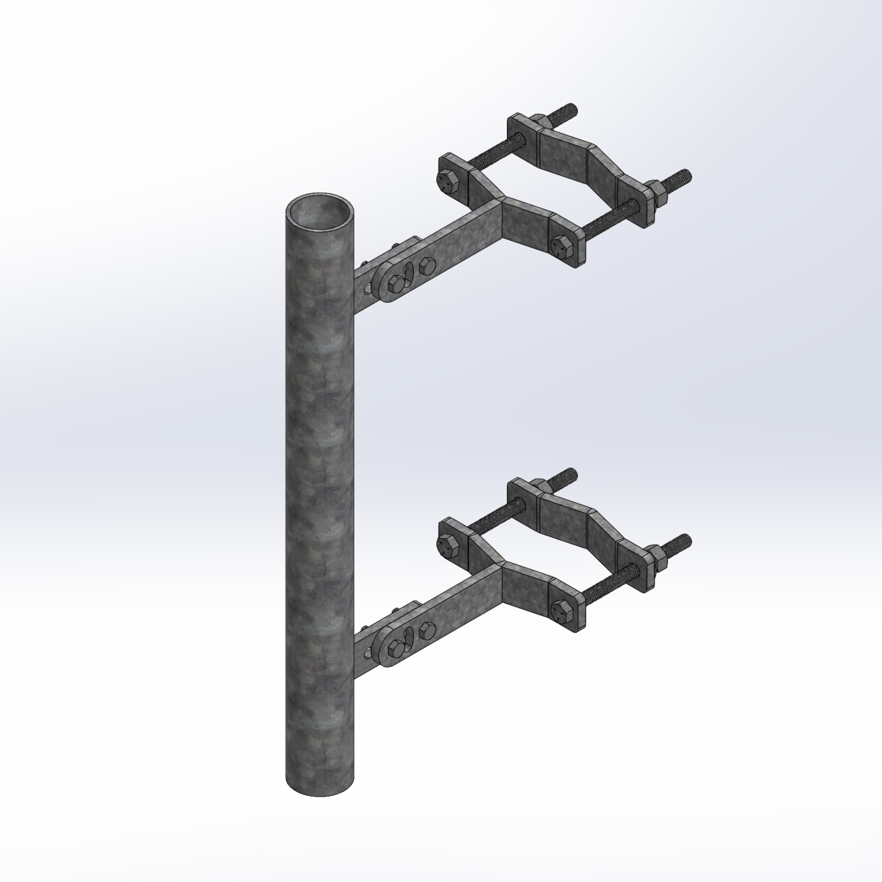 Reversing the outer clamp allows it to be attached to angle iron tower legs.