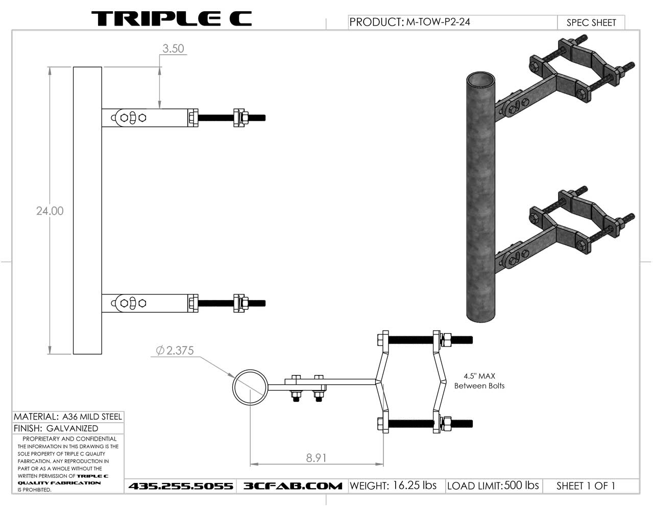 The Tower Mount is designed to securely mount Reflector Dishes, GPS Antennas, Yagi Antennas or any other device to a tower leg or pipe. The tilt feature on the Mount allows you to aim your device at the desired angle.